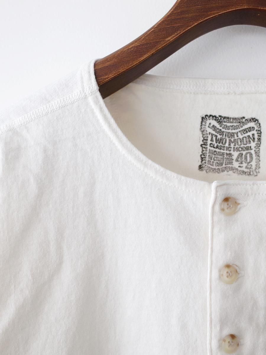 Two Moon Half Sleeve Henley Neck Tee - Old White