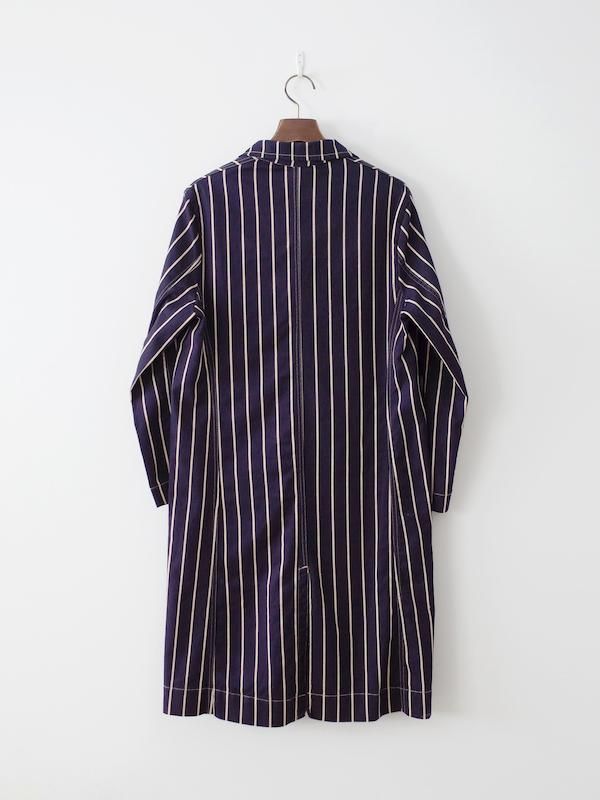 ブッチャーストライプが特徴的な1枚時立てのコート。