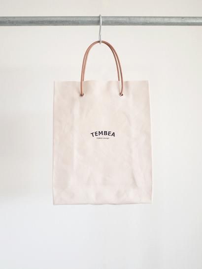こちらのペーパートートは、TEMBEAのロゴが入った「LOGOシリーズ」のアイテム。持ち手のレザーとボディのキャンバス地の組み合わせが良く、どちらも使い込むほどに風合い良く育っていきます。