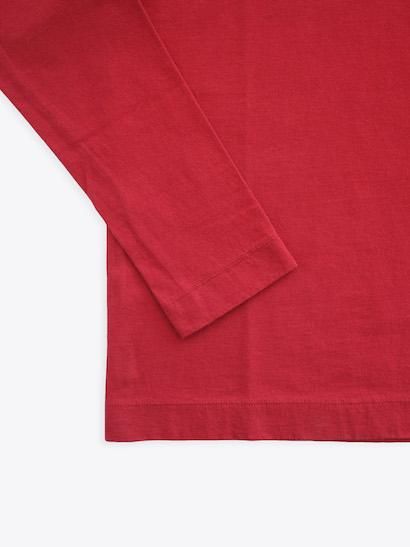 homspunの天竺長袖Tシャツは、ホームスパンを代表する定番カットソー。折りが太く、少し立ち上がったような絶妙な開きの襟ぐりに、程よいフィット感ながらもスッキリと見える綺麗なシルエットが特徴です。