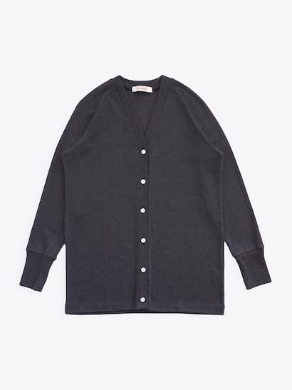 homspun 20/-フライス Vネック長袖カーディガン TOPダークチャコール