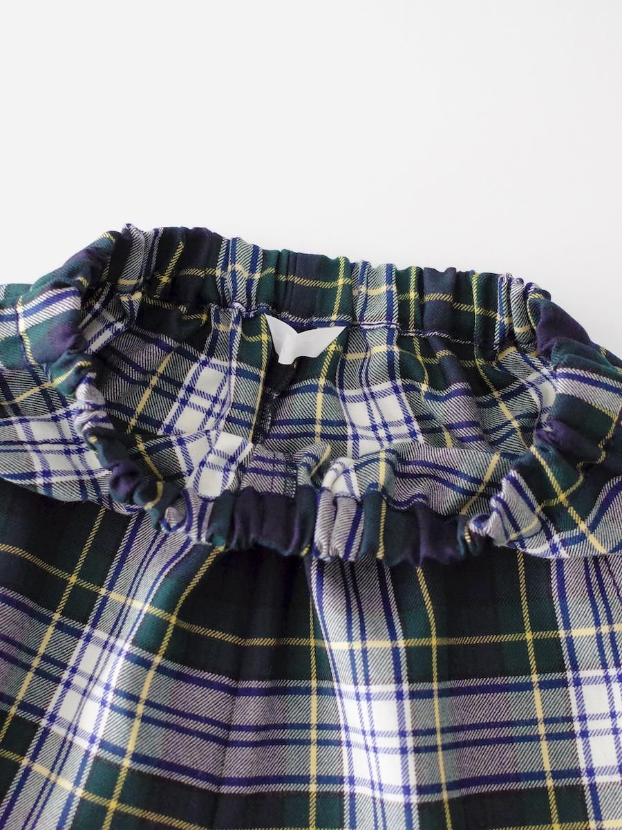 homspun ウールタータン ギャザーパンツ ネイビー×オフ白