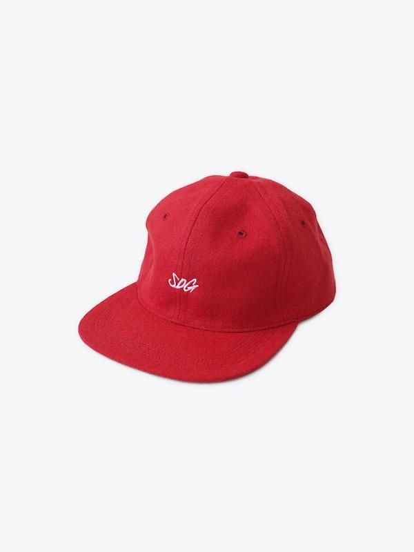 生地にフラノウールを使用した、TEMBEAのSDGキャップです。程よい深さの6パネル仕様で、生地感ともにあたたかみのある表情に仕上がっています。千駄ヶ谷を意味する「SDG」のロゴですが、今期は「MOGNO.6」名義でアート活動をされている内田洋一郎さんが描かれています。