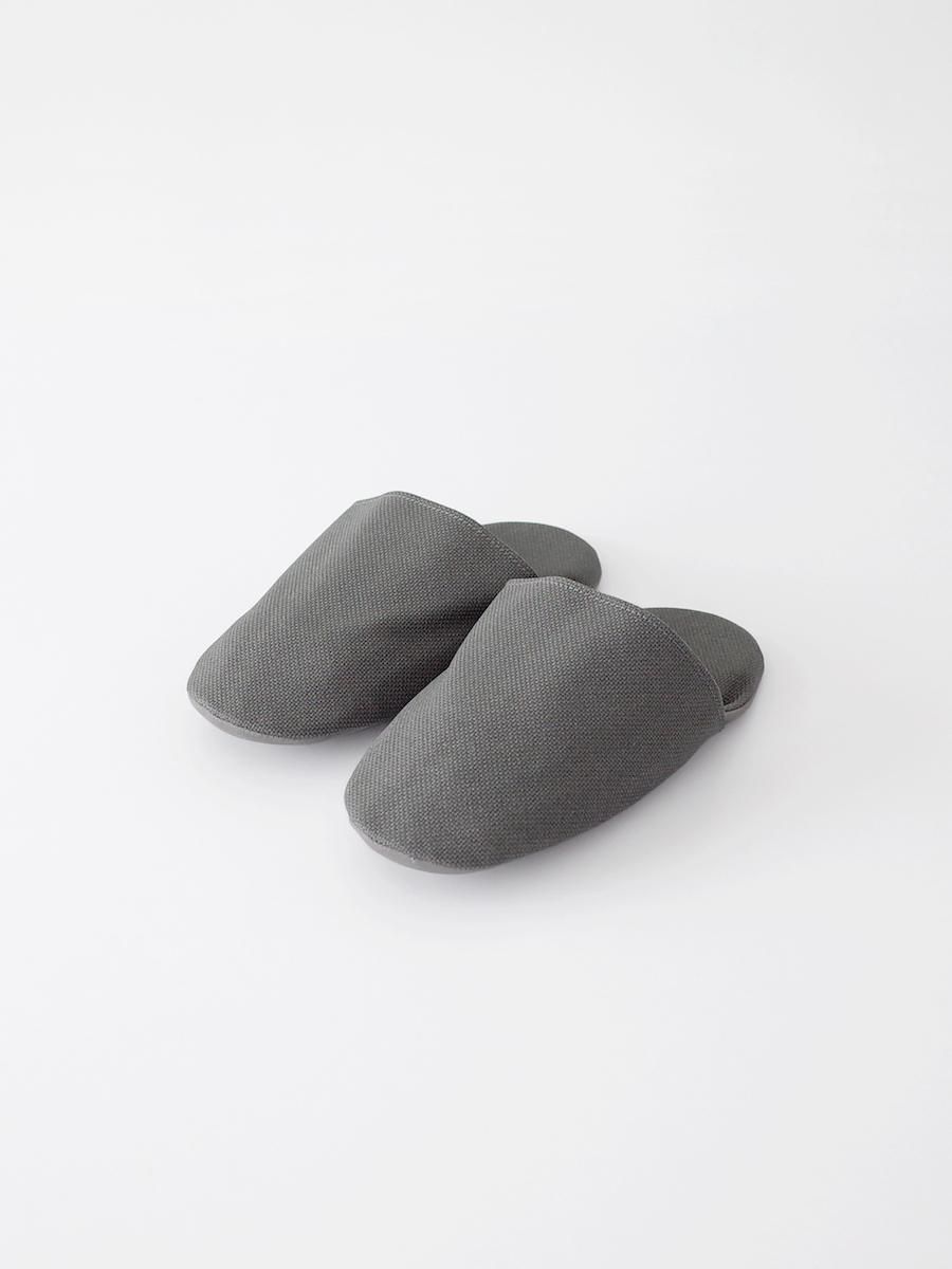 生地には、新潟の繊維産地である栃尾で開発したポリエステルを使用しています。水や汚れをはじく撥水加工が施されているので、キッチンやトイレなどの水まわりで使用するスリッパとしても最適です。また生地には適度なハリがあり、しっかりとした丈夫な生地感なので長く使用することができます。