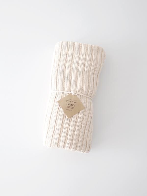 F/style(エフスタイル)のスーピマ綿のリブ編みブランケットです。