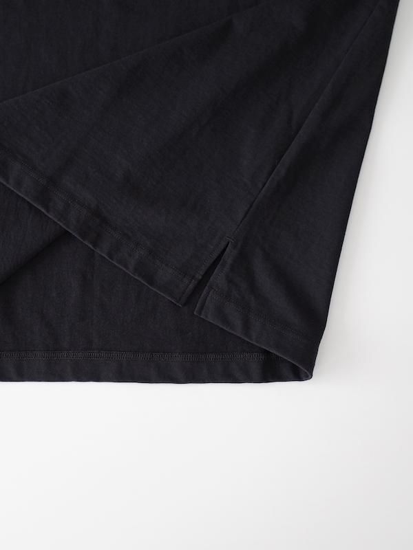 このガンジーネックのデザインを採用し、カットソー素材で仕上げた定番のワンピース。コットン100%を使用した生地は、例年よりも若干薄手ではありますが、それでも丈夫でしっかりとした生地感です。透け感もなく1枚で安心して着ることができ、裾の両サイドに入ったスリットによって足さばきが良いのもポイントです。