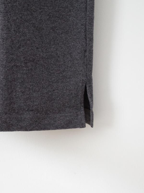 こちらは生地の表面をほんのり起毛させており、コットン100%ながら秋冬の時期にもより袖を通しやすい1枚になっています。全体的に程よくゆとりがあり、着丈もやや長めで体型をカバーできながら、裾の両サイドに入ったスリットによって足さばきが良いのも特徴です。透け感もなく、1枚で安心して着ていただけます。