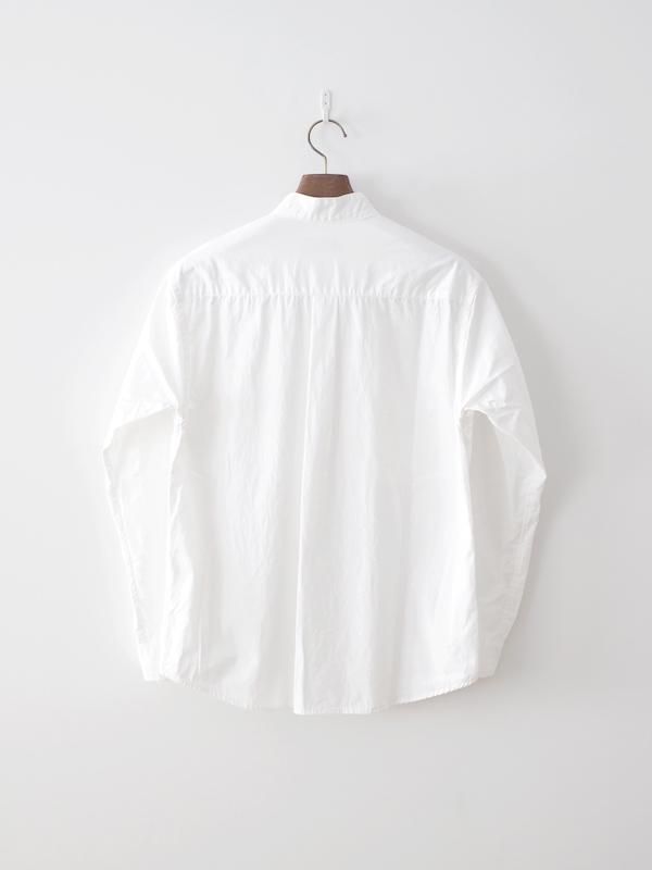 コットン100%を使用した、通年袖を通せるバンドカラーシャツ。