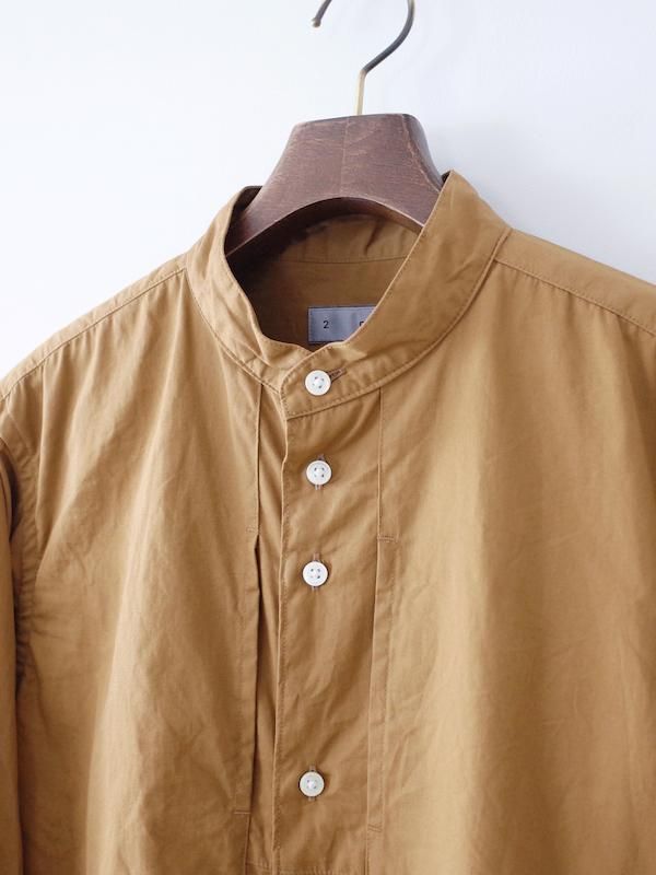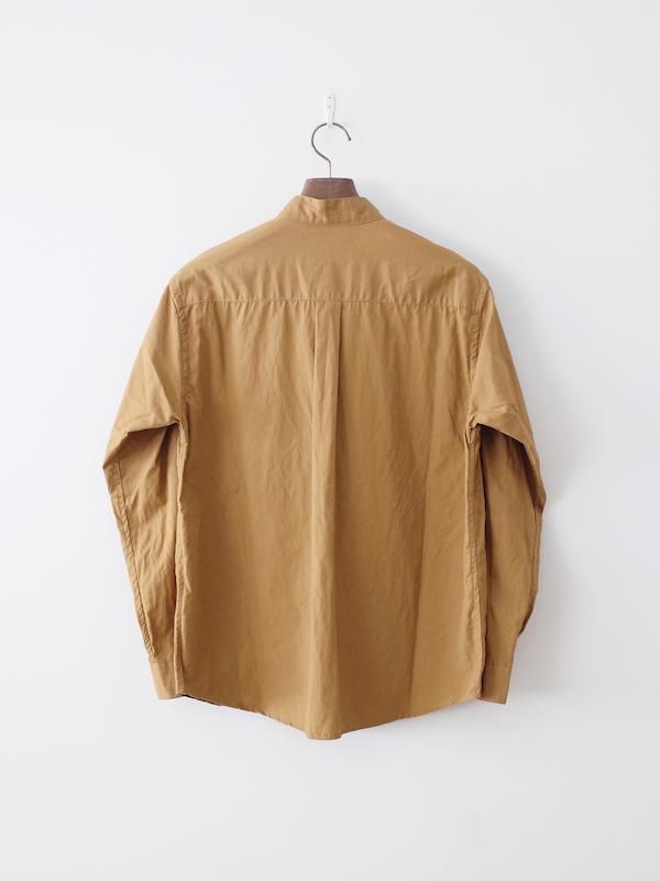 コットン100%を使用した、通年袖を通せるバンドカラーシャツ。