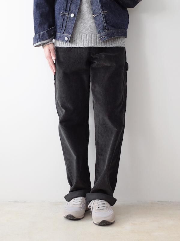 太畝のコーデュロイ生地を使用したペインターパンツ。前開きはジップ仕様、サイドは3本針で縫製しタフな作り、右足のツールポケットや左足のハンマーループなど、ペインターパンツのオーソドックスなデザインを採用しています。生地はほんのり光沢感のあるドライタッチなコットン・コーデュロイ。やや厚みのあるしっかりとした生地感ながら、秋口から春先までの長い時期で穿いていただけます。程よい太さでストンと落ちる合わせやすいシルエットです。