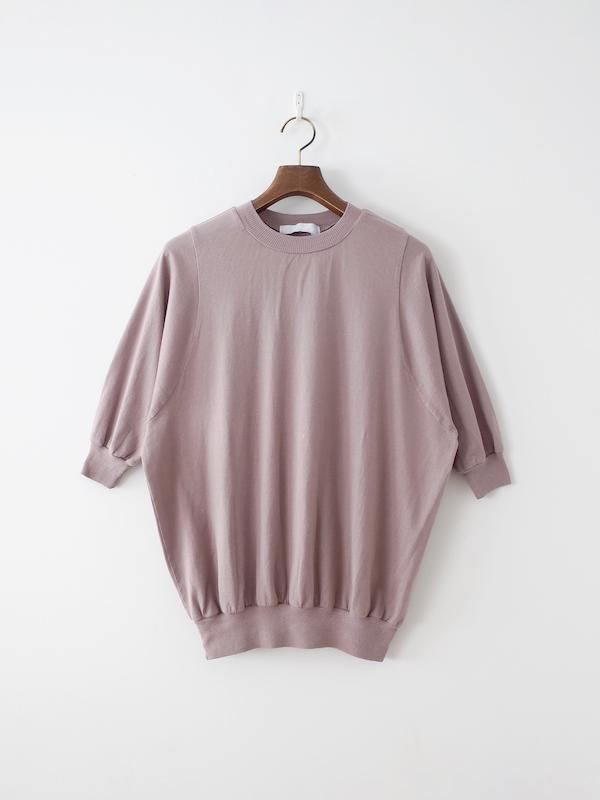 アームホールと身幅を広くとったゆとりのある着心地、袖口と裾をリブにしてラインを絞った独特なシルエットが特徴的な七分袖のカットソー。生地は60番手の糸を2本取りして編み立てています。薄手で柔らかく、長い時期で使える生地感です。個性がありながらも着用するとよく馴染み、甘くなりすぎないバランスの良さはhomspunならでは。カジュアルに袖を通せる点もポイントです。