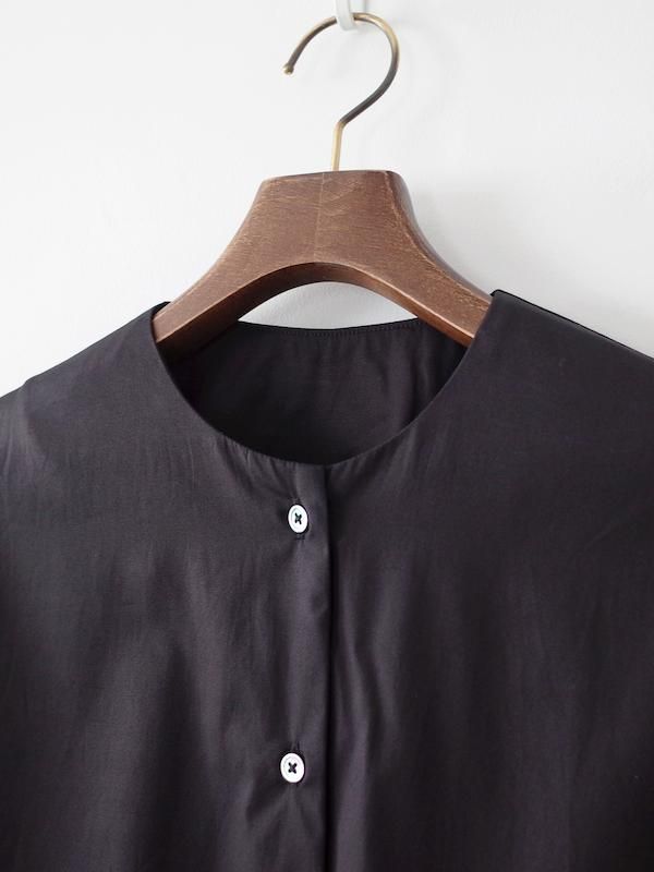 フロントに並んだシェルボタンのディティールも特徴的で、ボタンを開けて羽織りのように着用し、インナーやボトムスを覗かせて着こなしを楽しむことも。高密度に織り上げた薄手のコットンブロード地は、程よいハリと光沢のある生地感です。さらりとした肌触りで暑い時期にも涼しくお過ごしいただけます。