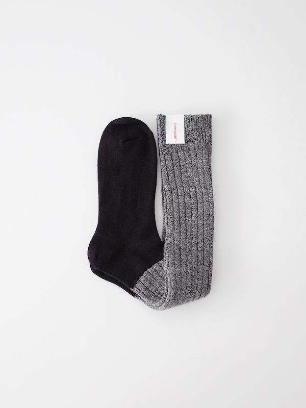 homspun コットンウール 配色ハイソックス ブラック×ブラック杢