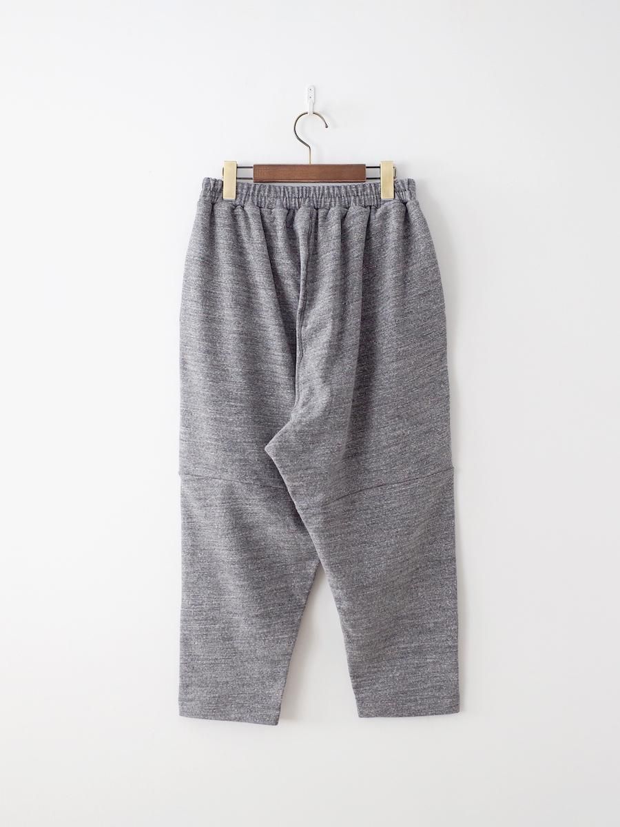 目を詰めて編まれた度詰のしっかりとしたスウェットパンツ。霜降りのような杢チャコールの生地感が良い雰囲気です。