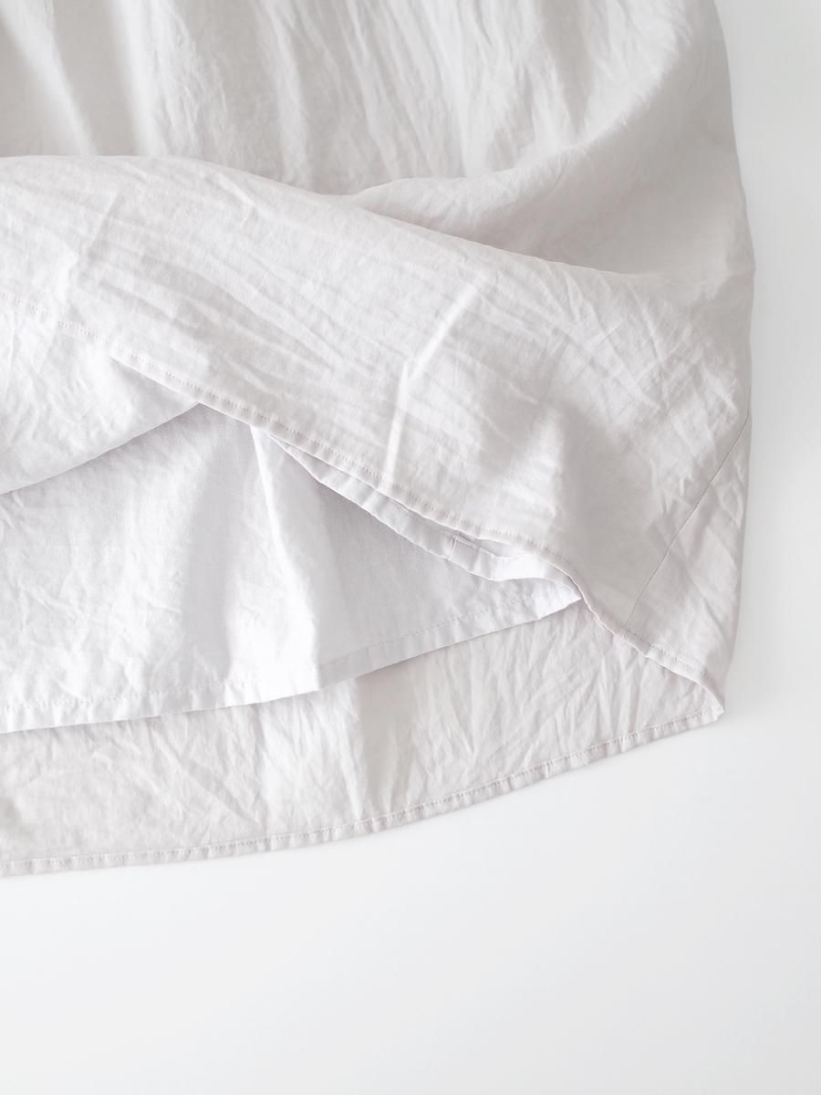 ウエストはゴム仕様で、両サイドはポケット付き。ギャザーによって適度にボリュームがありながら、広がり過ぎずにタイト過ぎない、絶妙なバランスの良さが魅力的です。透け感が出ないよう、コットンの裏地が施されています。