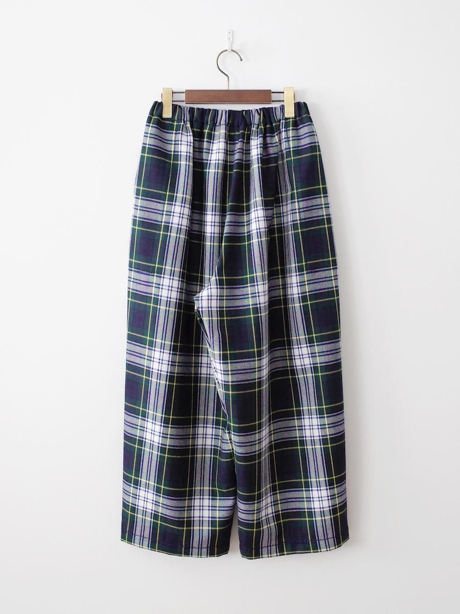homspun ウールタータン ギャザーパンツ ネイビー×オフ白