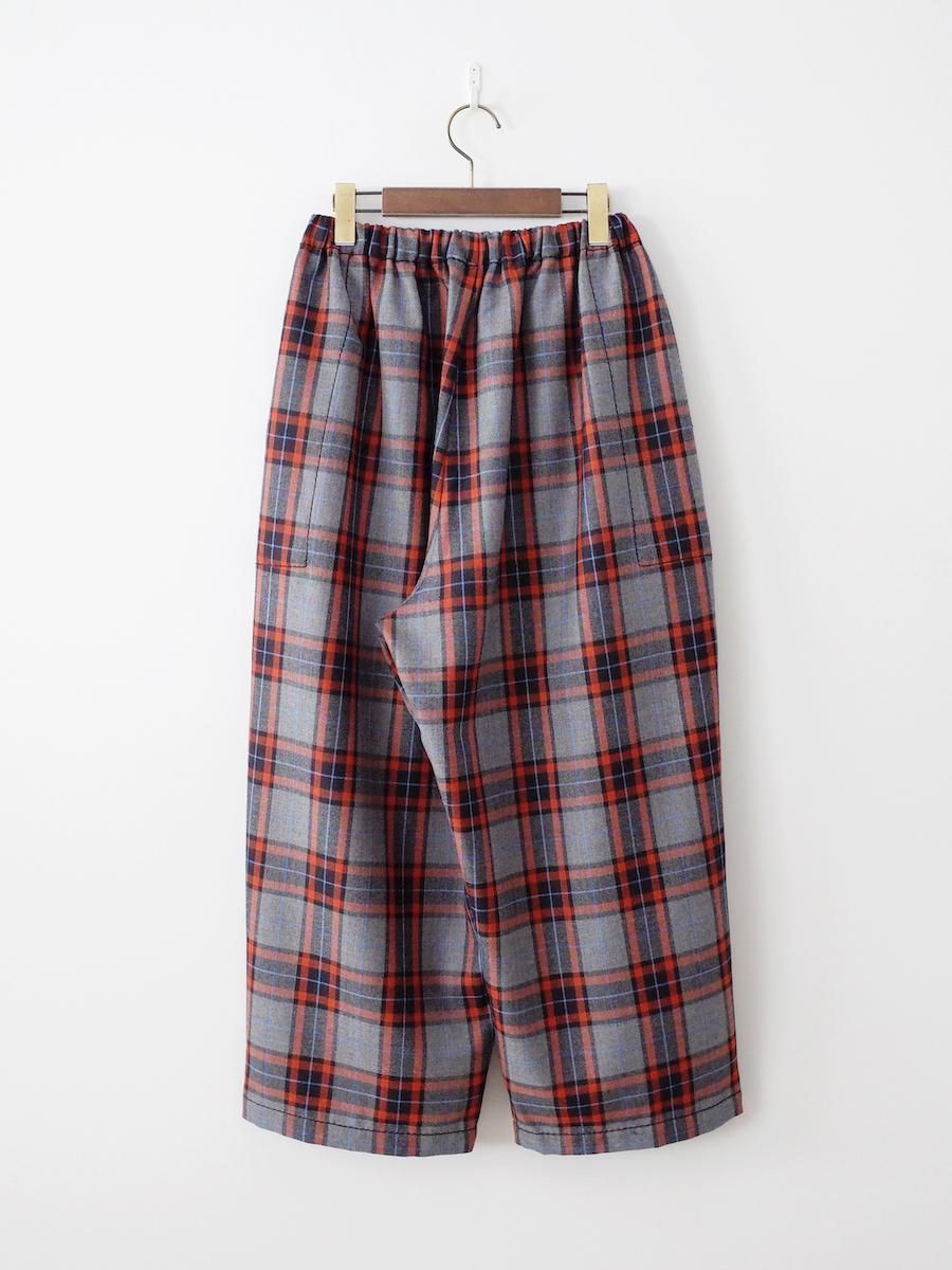 homspun ウールタータン ギャザーパンツ グレー×レッド