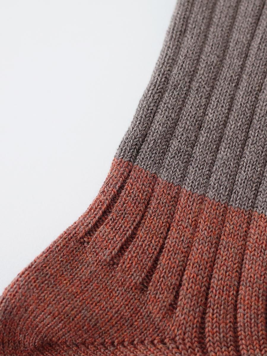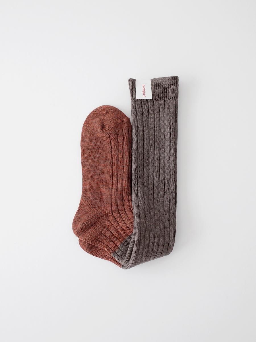 homspun コットンウール 配色リブハイソックス レンガ
