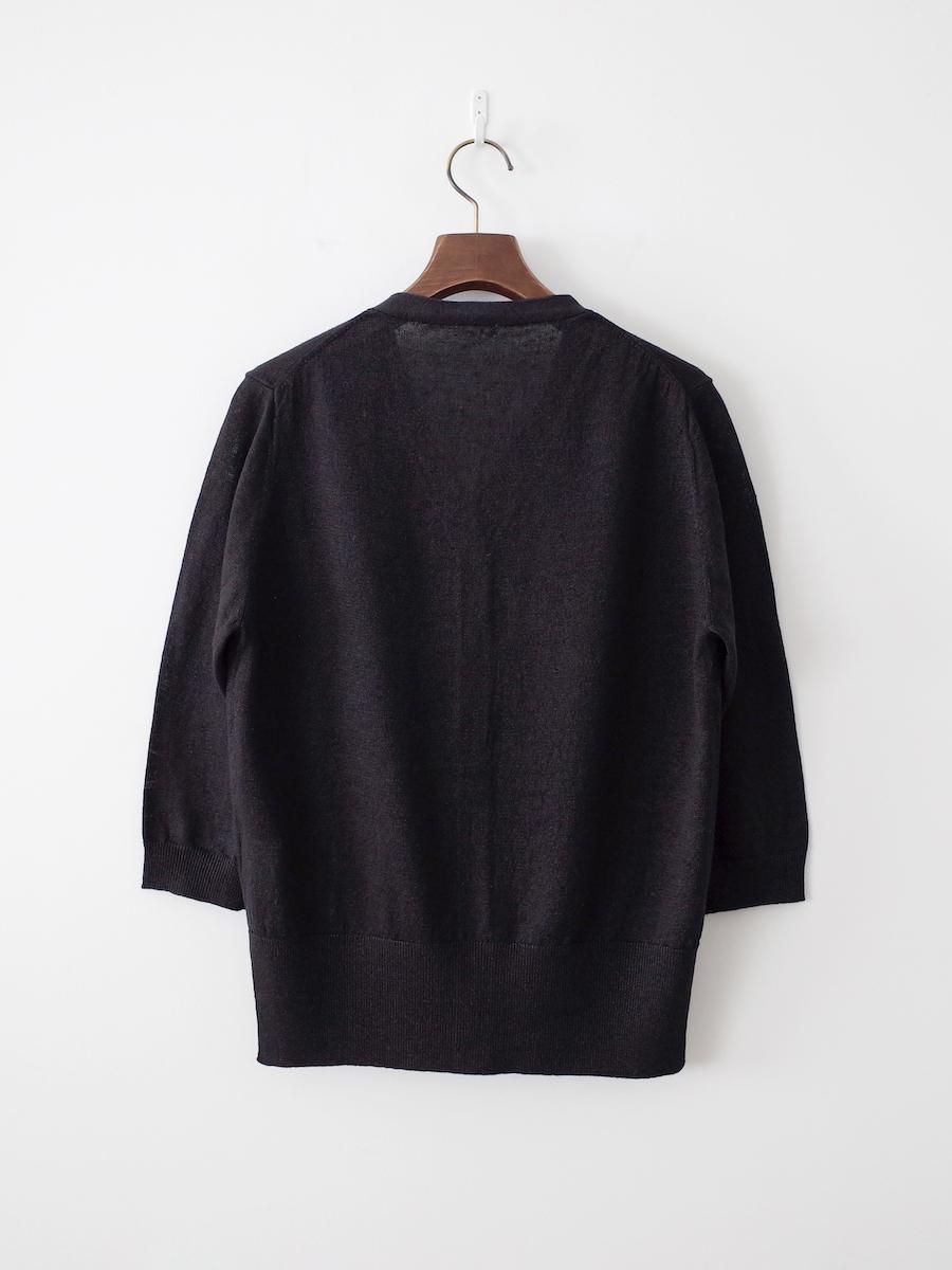 リネン素材を使用したVネックカーディガンです。清涼感のあるさらりとした肌触りで、春や秋だけでなく、夏や冷房対策の羽織りとしても重宝する1枚。袖は七分〜八分ほどの長さで、長袖は着たくないけど二の腕はカバーしたい方、また手首をスッキリと見せたい方やアクセサリーなどを見せたい方にも嬉しいデザインに。