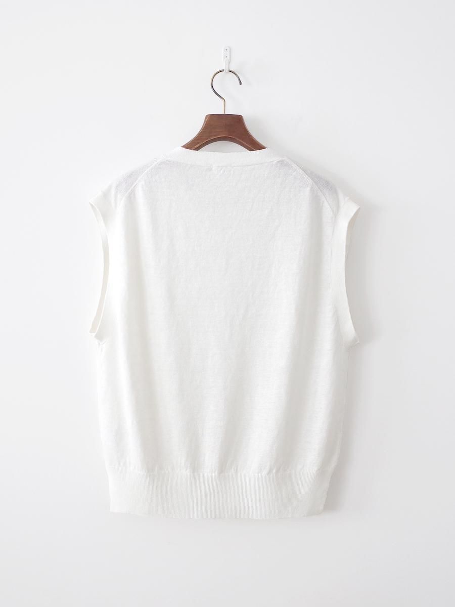 リネン素材を使用したVネックベストです。清涼感のあるさらりとした肌触りで、春や秋だけでなく、夏の暑い時期にも重宝する1枚。