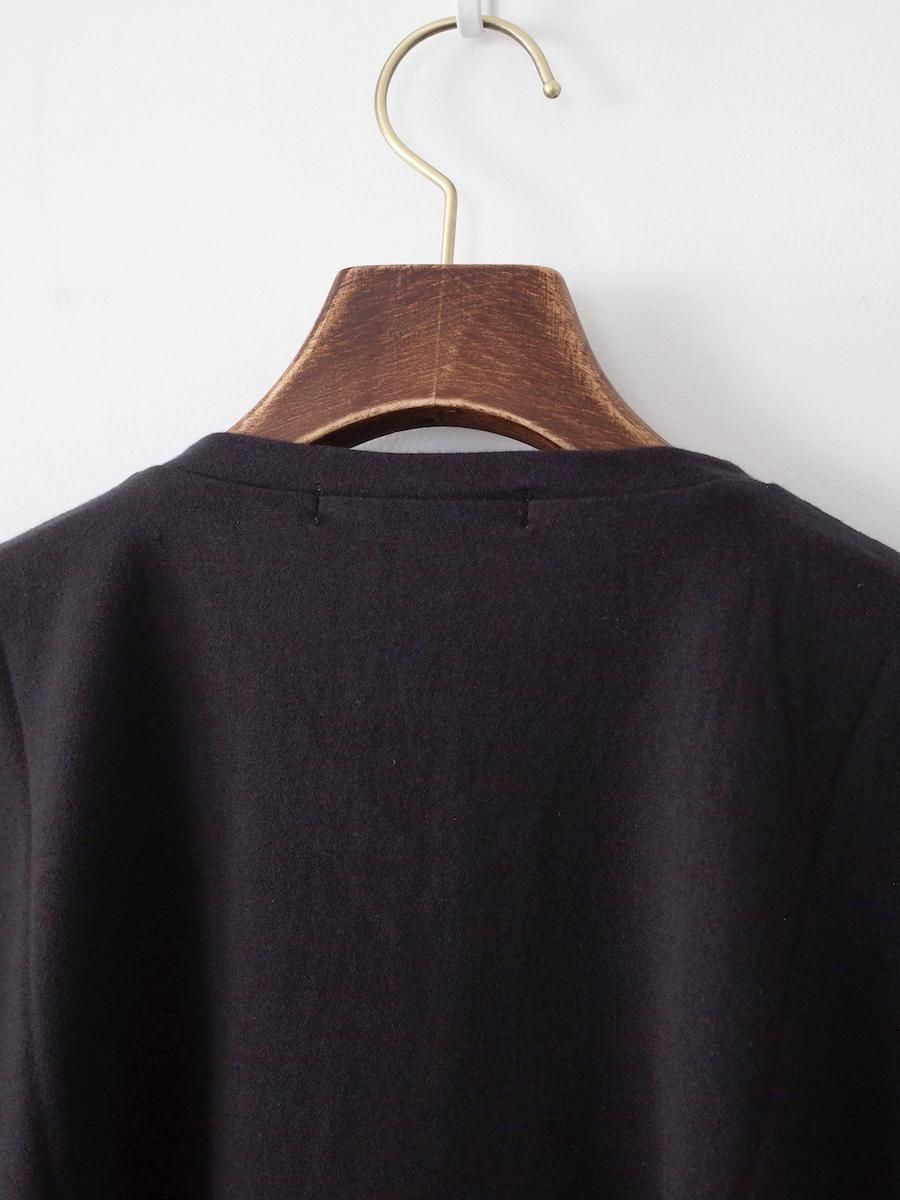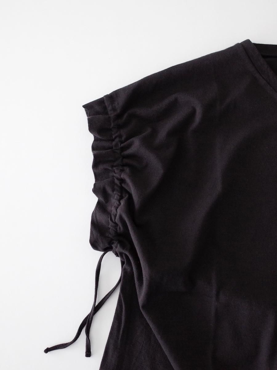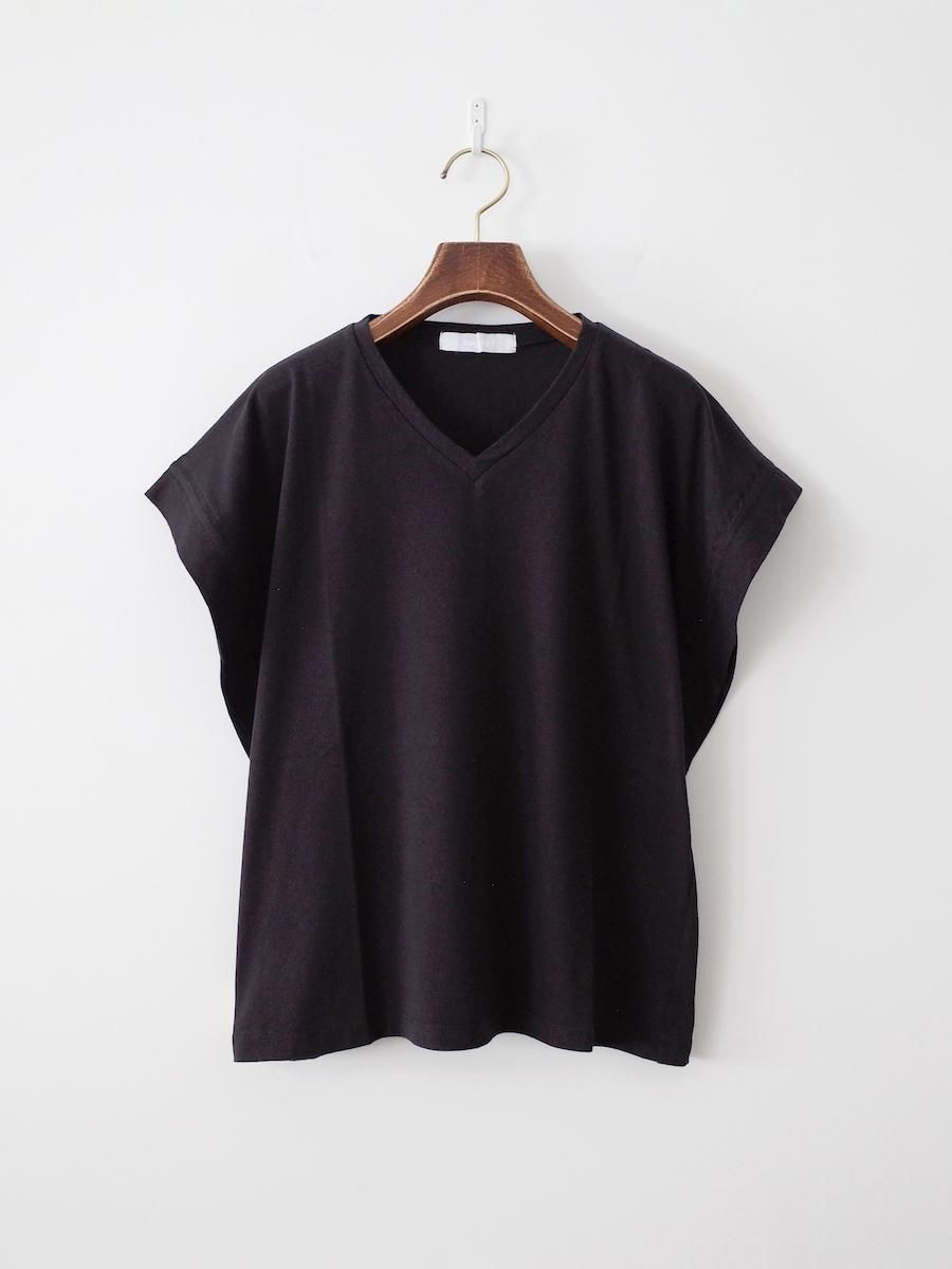 homspun 40/1フライス VネックギャザースリーブTシャツ ブラック
