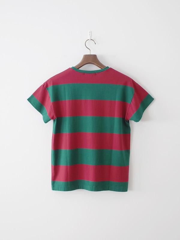 homspun 天竺太ボーダー半袖プルオーバー グリーン×レッド