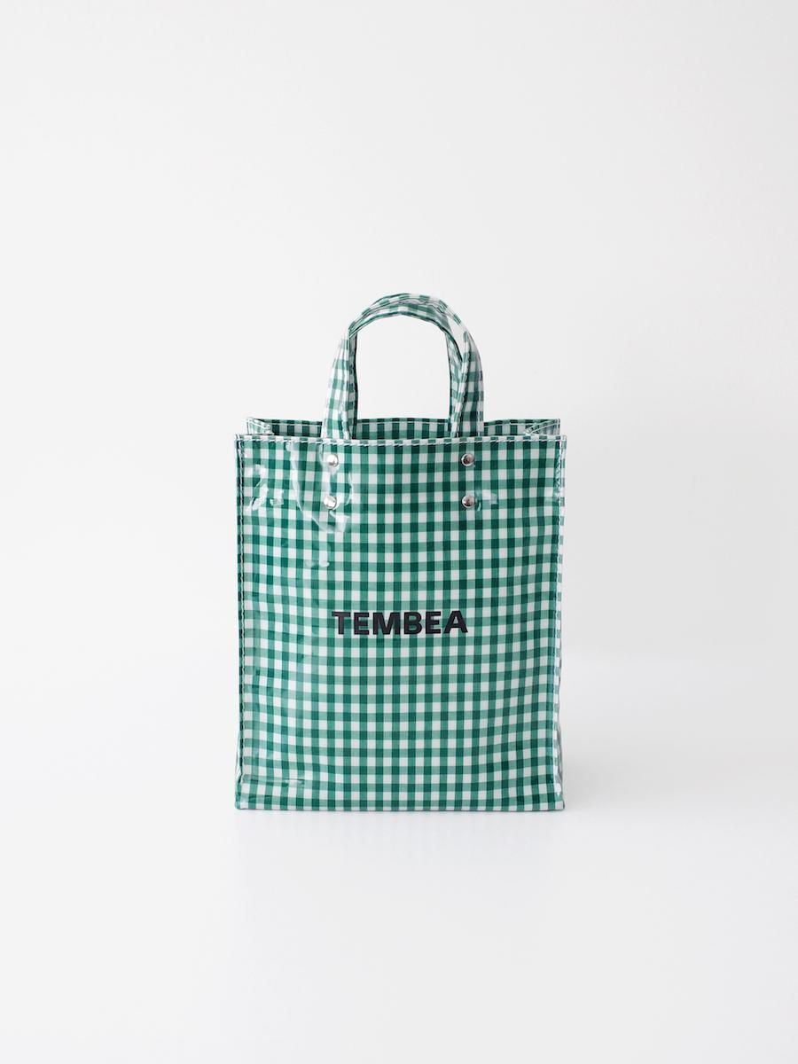 TEMBEA Paper Tote Small PVC Coating - Gingham Green