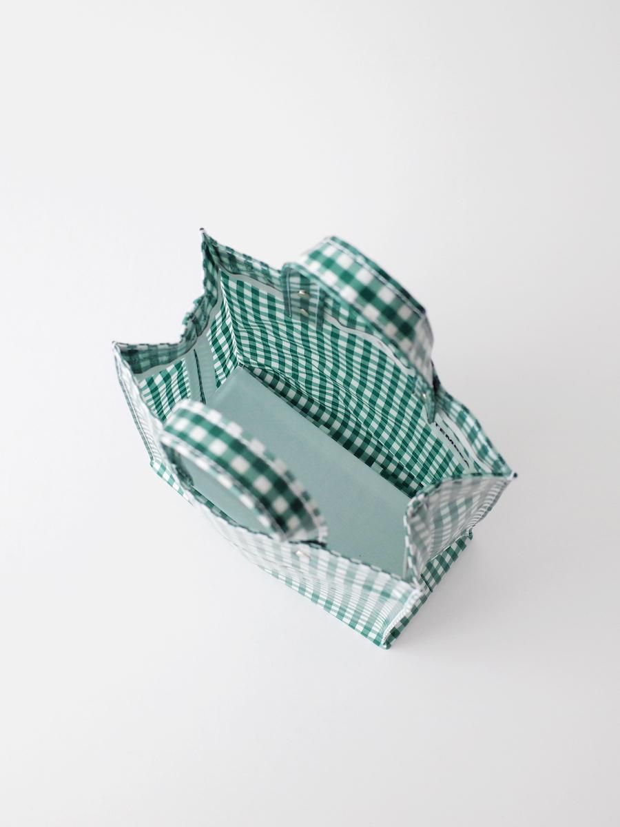 柔らかなギンガムチェックの生地にPVCコーティングを施した、ペーパートートのスモールサイズです。