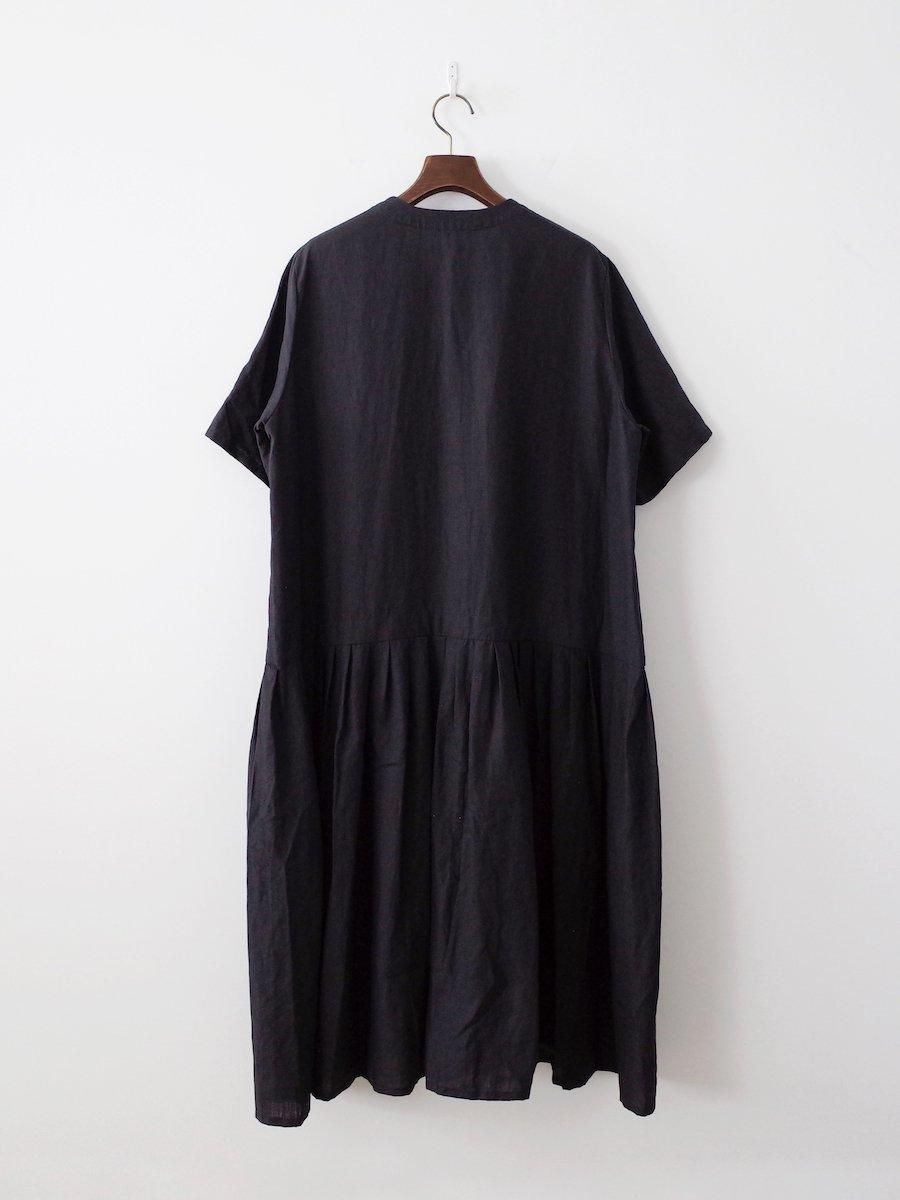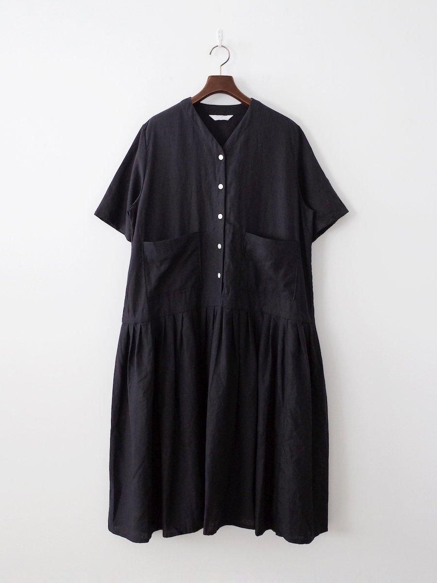 homspun リネンバイオ Vネックタックワンピース ブラック
