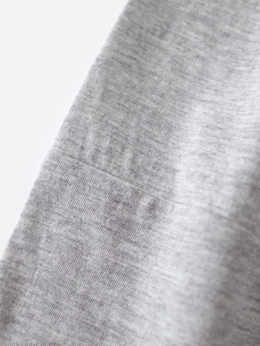 素材は変わらず。細い糸で丁寧に編まれた、伸びが良く、とても柔らかな薄手の天竺生地。化繊を使用することなく天然素材であるコットンのみを使用しており、その人に優しく寄り添うような、締め付けのない穿き心地の良さが魅力です。