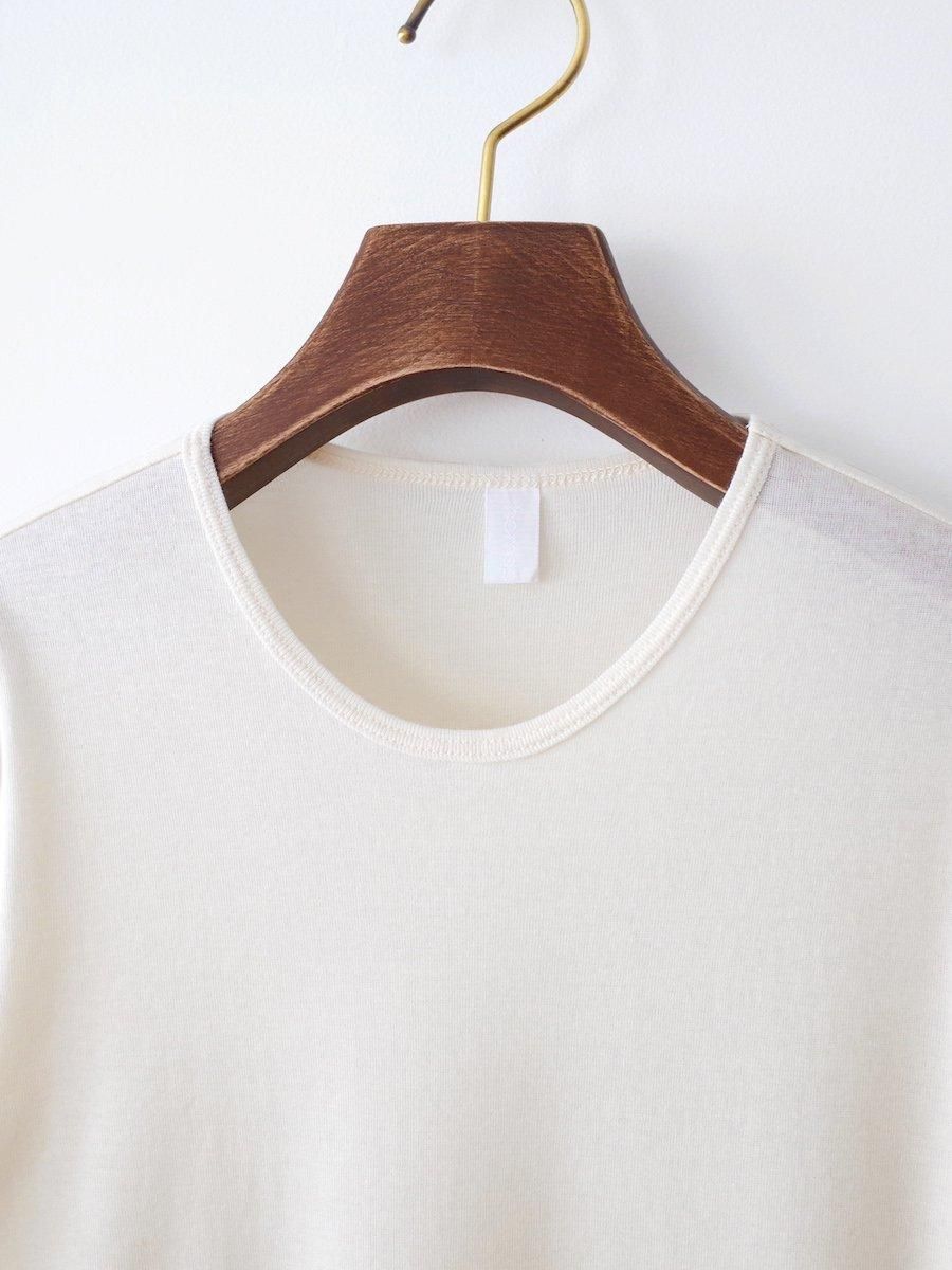 やや開きのあるクルーネックなので、ネックラインを程よくスッキリと見せてくれますし、上から着るトップスの首元から干渉しにくいという良さも。細身のトップスの中にも着やすく、シャツやニット、ワンピースなど、幅広いアイテムとコーディネートしやすい1枚です。着丈が長めで腰周りまで包み込んでくれる安心感もあります。