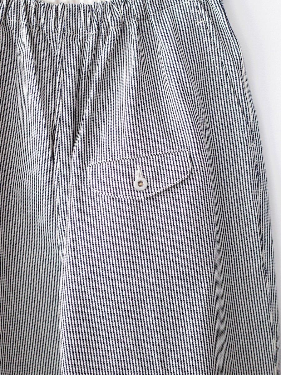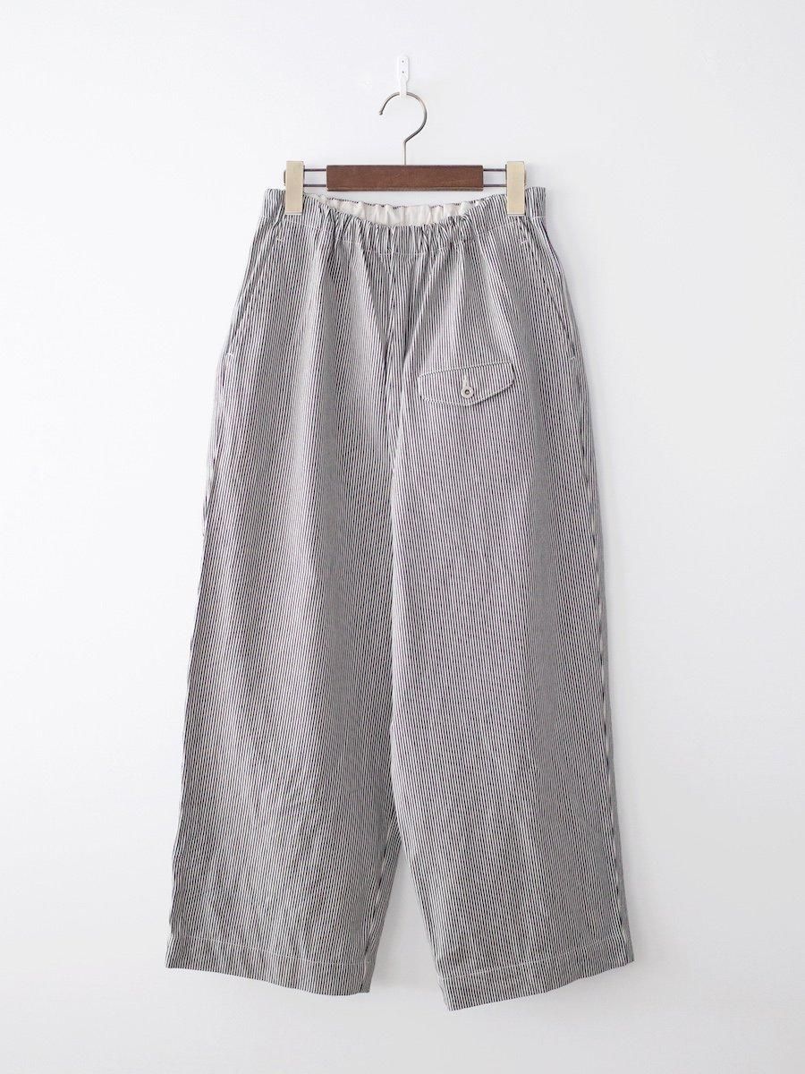 ゴーシュ コットンヒッコリー ワイドパンツ ネイビー×ホワイト