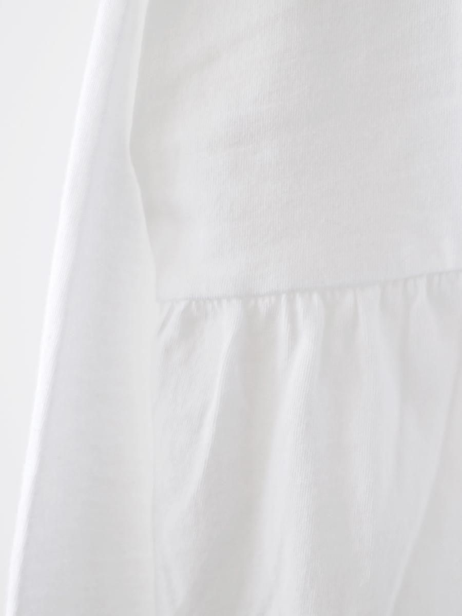 ゆとりのあるハイネックや、胸下の生地の切り替え位置から施されたギャザーが特徴的。程よく個性があり、愛らしさもあり。シンプルに1枚で着ても主役になりますし、カットソーですがブラウスのような印象も持ち合わせたアイテムです。