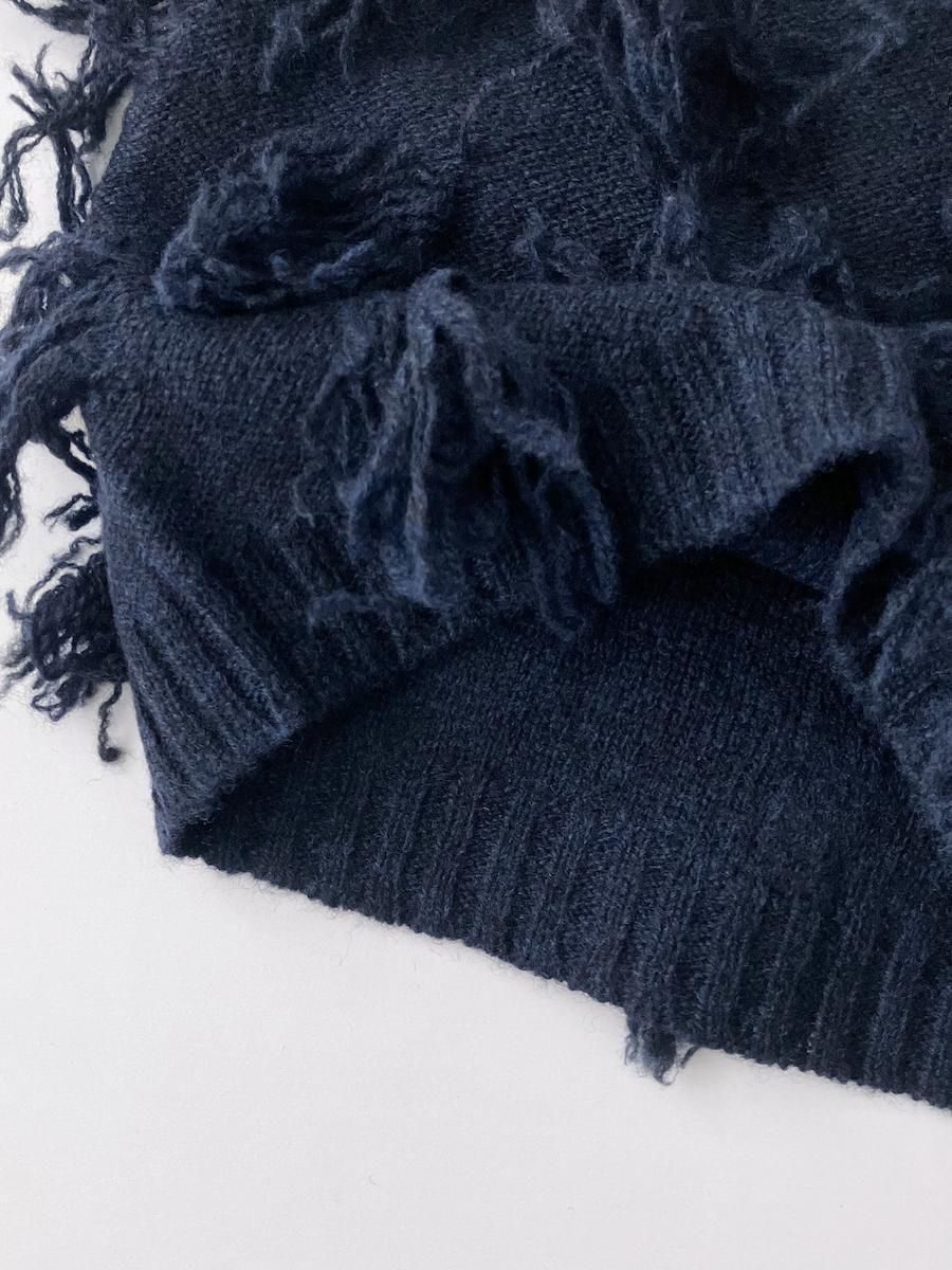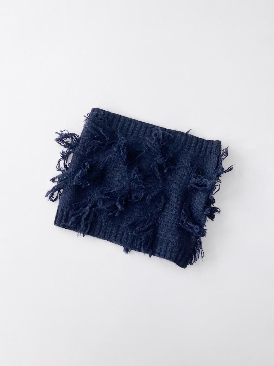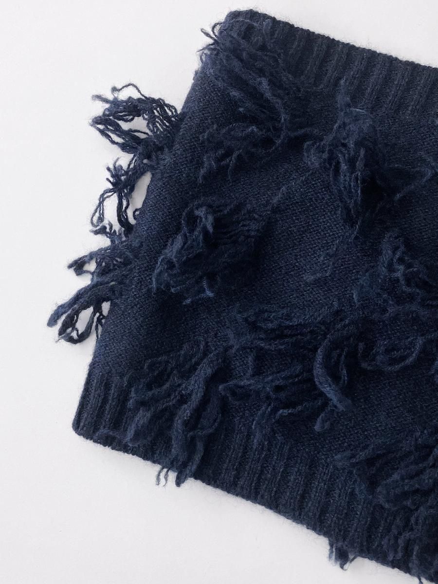 homspun ラムウール フリンジネックウォーマー ネイビー