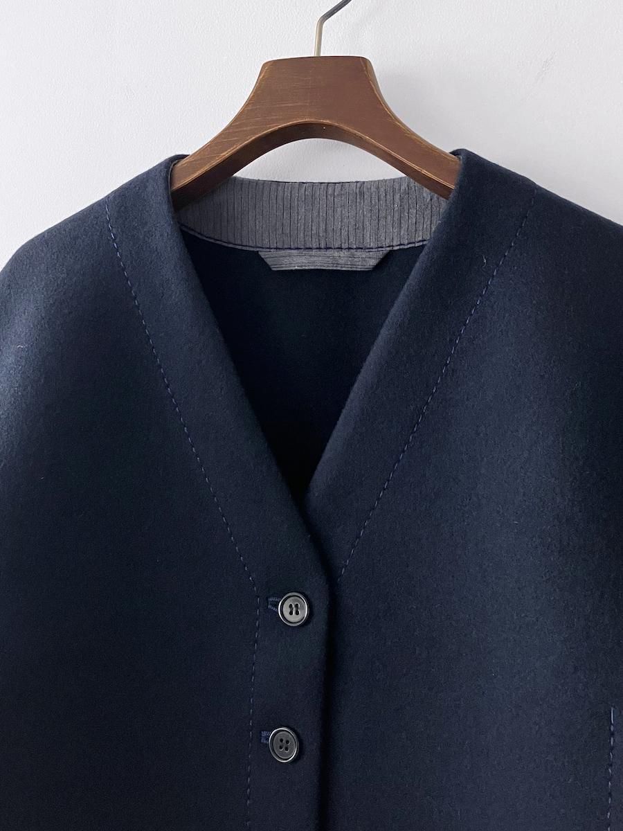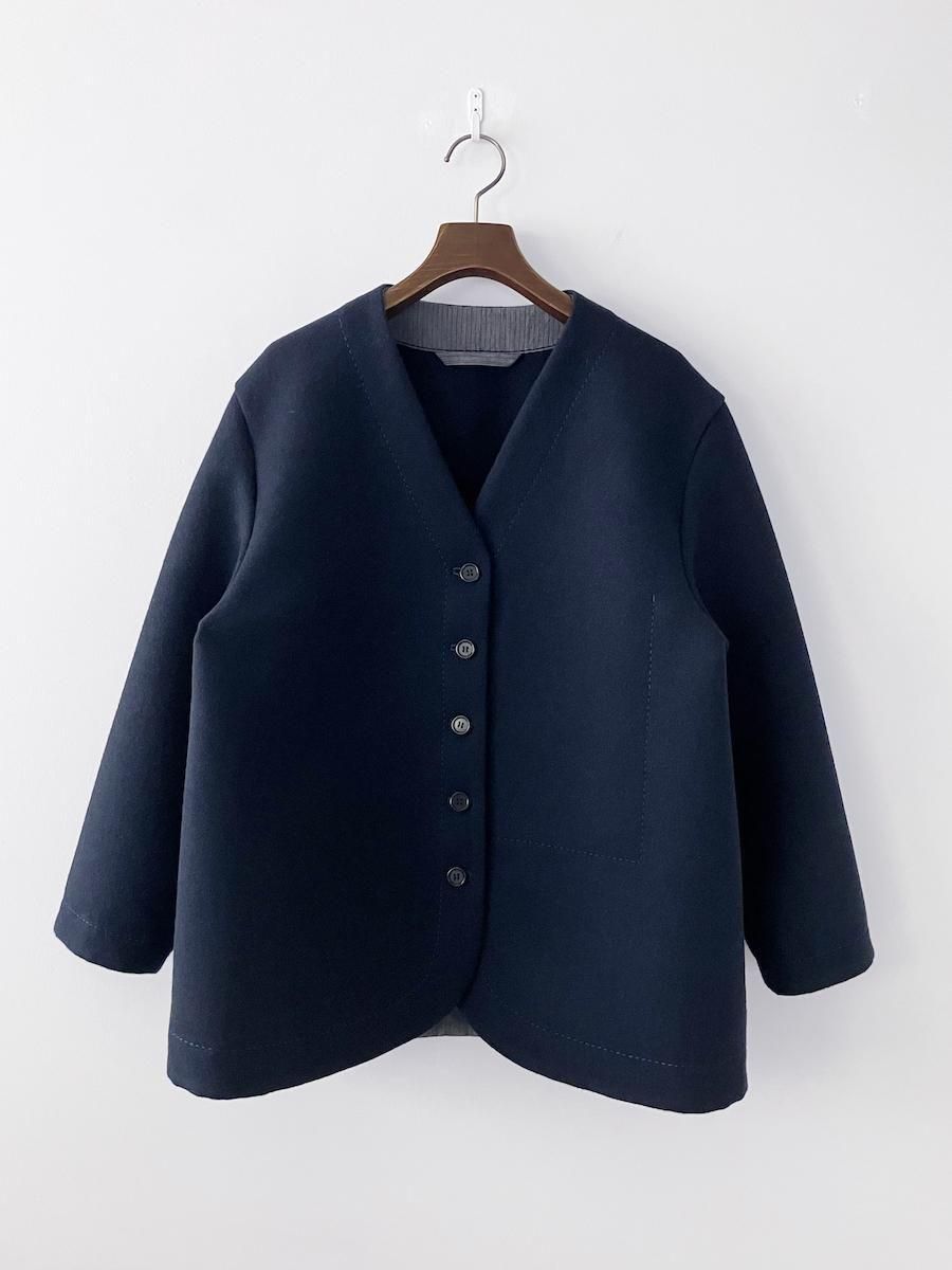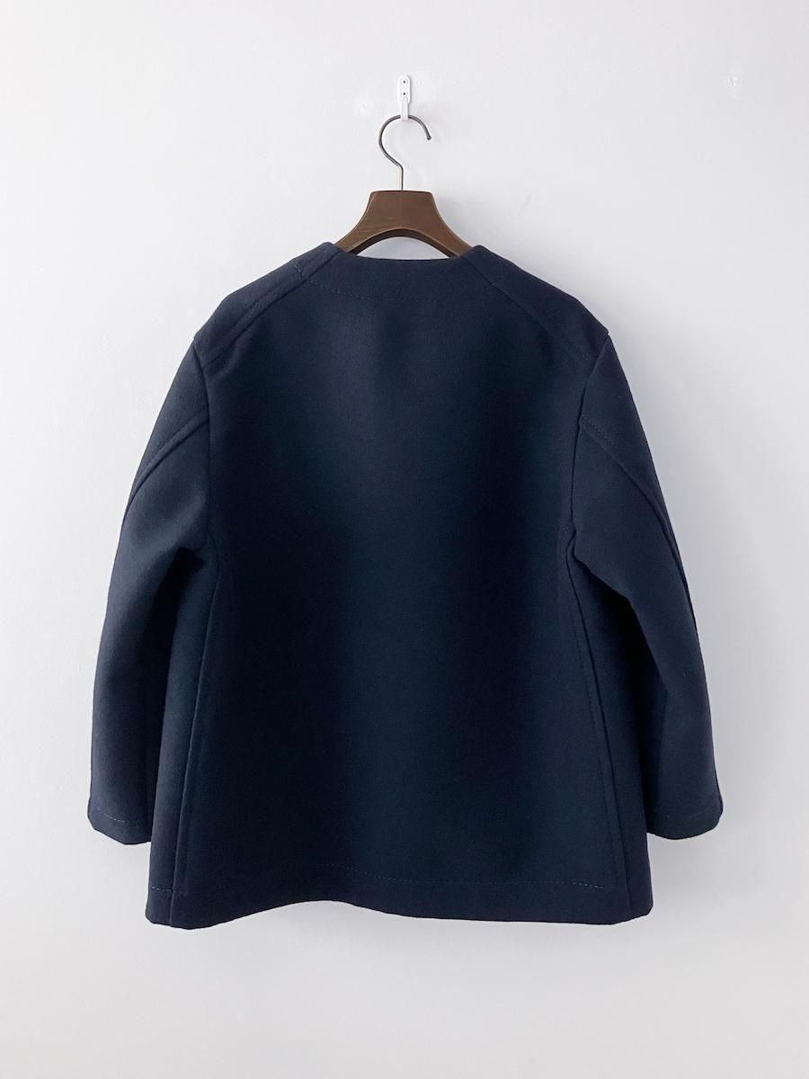 homspun 2重織メルトン ノーカラージャケット ネイビー